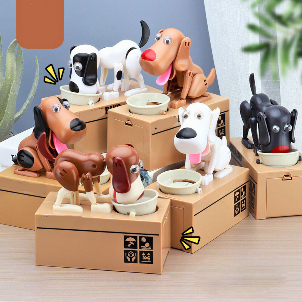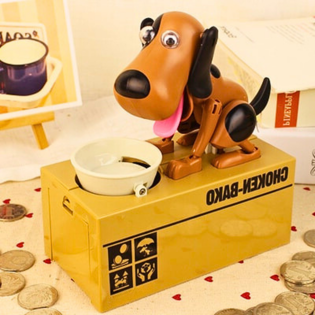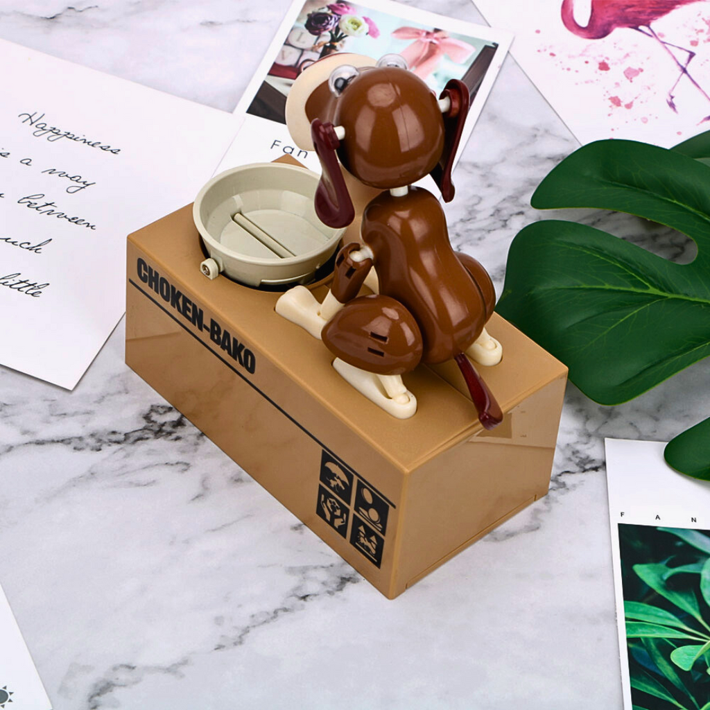 Este cãozinho terá o prazer de “comer” as suas moedas e economizar o dinheiro para você. Divertido e bonito para o uso diário, decoração ou como brinquedo para crianças aprenderem a “poupar”.