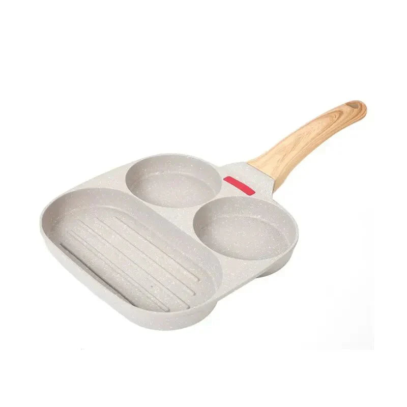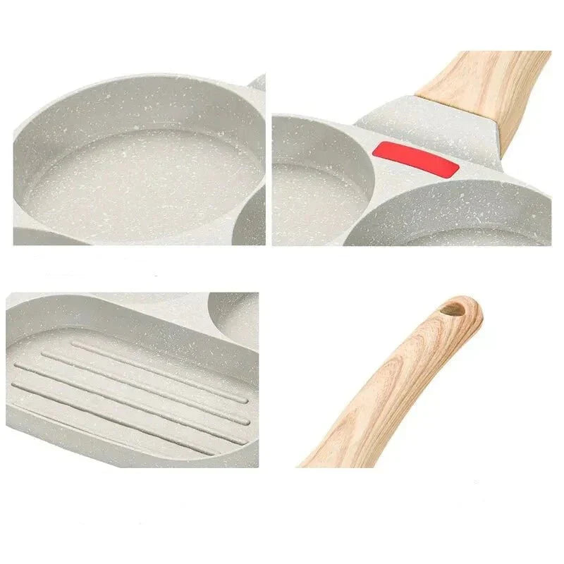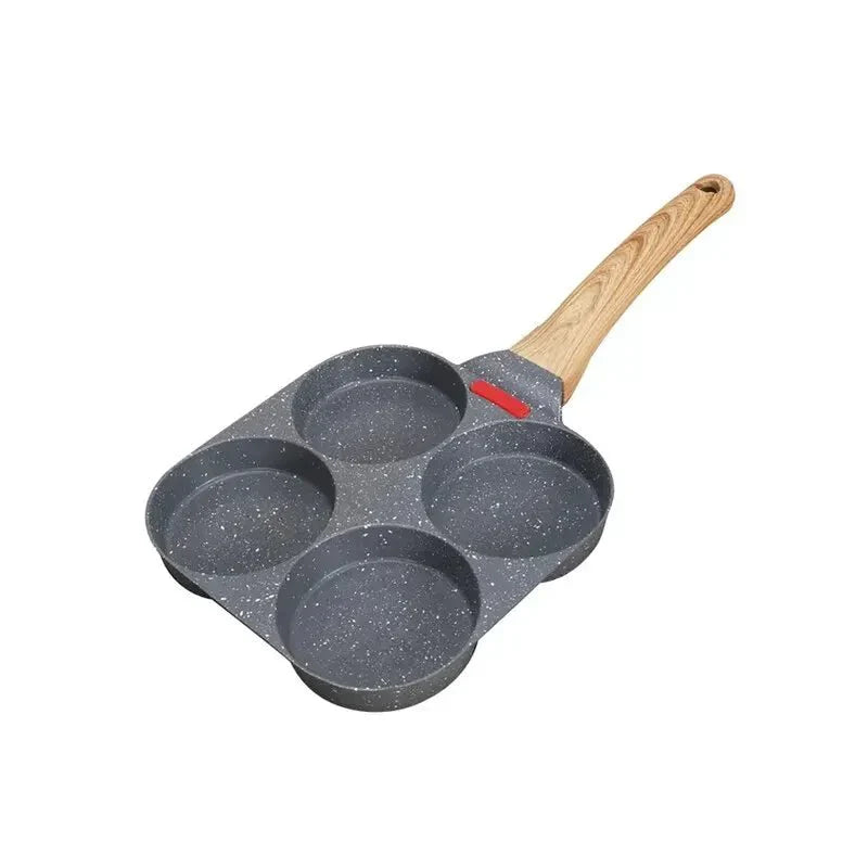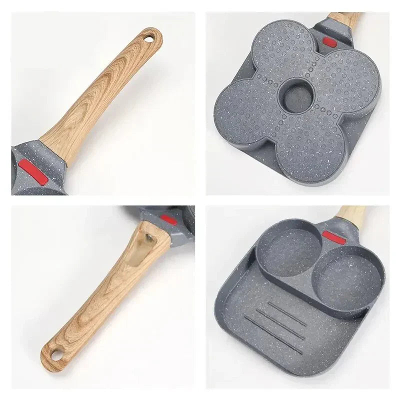 Frigideira Antiaderente com 3 Furos/4 Furos e Cabo de Madeira - A opção perfeita para preparar omeletes, bifes e ovos de forma fácil e eficiente. A tecnologia antiaderente facilita a limpeza, enquanto o cabo de madeira adiciona um toque de estilo à sua cozinha. Um utensílio versátil para suas criações culinárias.