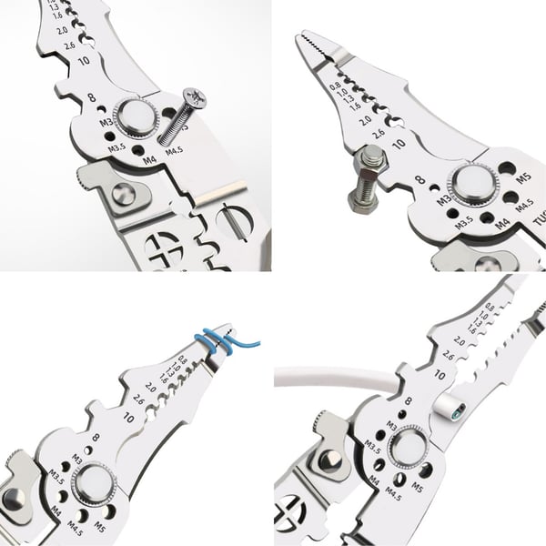 - 10 funções em um único alicate: Corte, descascamento, crimpagem, dobra, corte de fio, aperto, raspagem e muito mais.