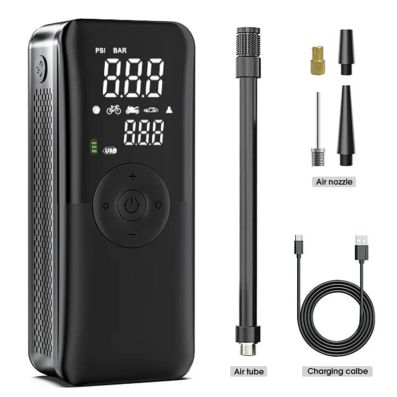 - Adeus, imprevistos: Calibre seus pneus de carro, moto, bicicleta, bolas esportivas e até colchões infláveis em qualquer lugar, a qualquer hora.